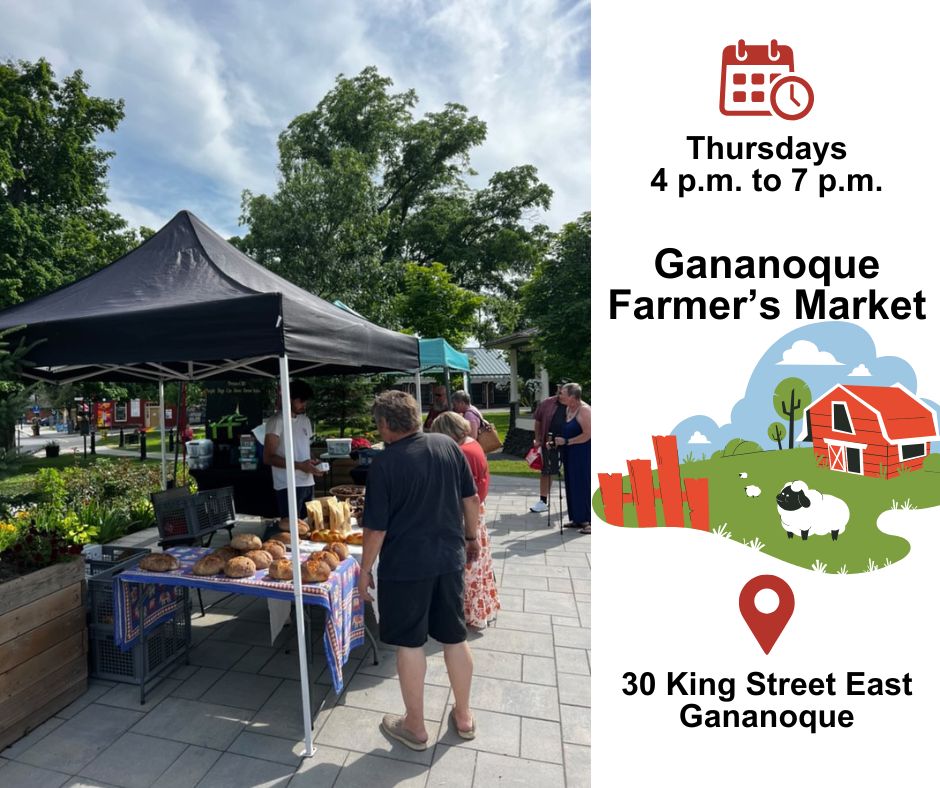 Sep 11, 2025 - 4:00pm to Sep 11, 2025 - 7:00pm Join the Gananoque Farmers Market every Thursday from 4 P.M - 7 P.M in Town Park Event location: 30 King Street, East Files Gananoque Farmer's Market