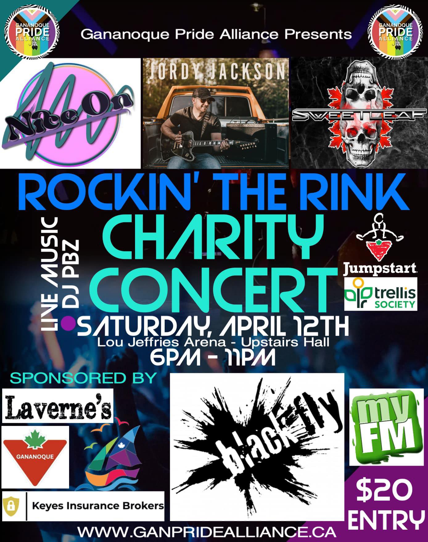 Gananoque Pride Alliance Presents - Rockin' The Rink Charity Fundraiser featuring Jordy Jackson, Sweetleaf, Nice On, Live Music DJ