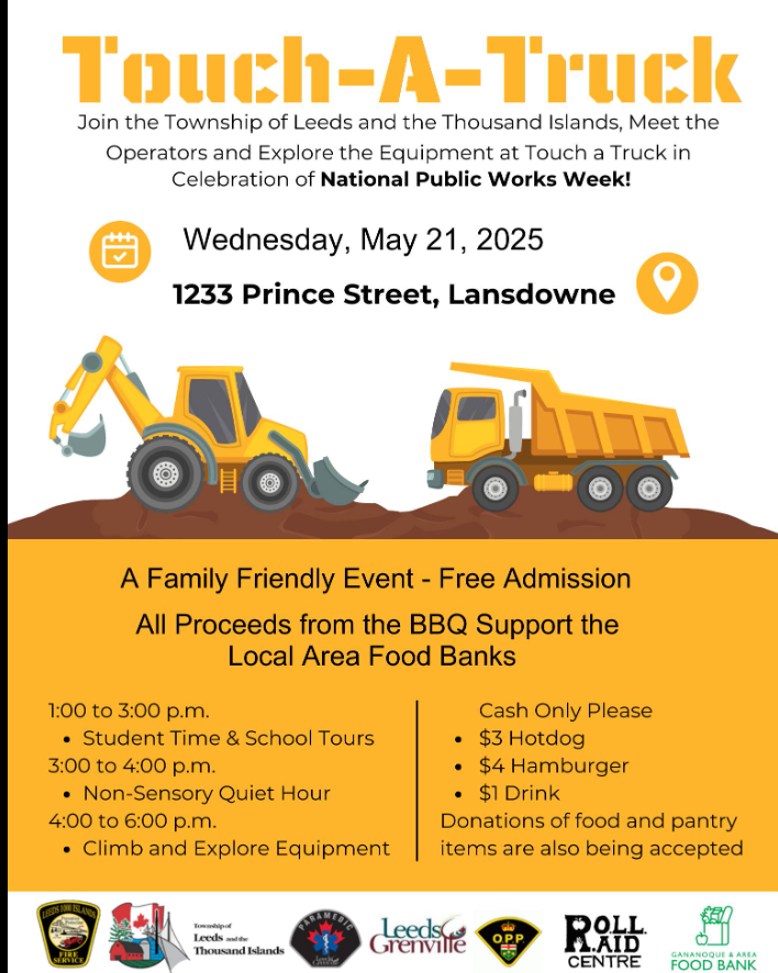Join the Township of Leeds and the Thousand Islands, meet the Operators and Explore the Equipment at Touch A Truck in Celebration of National Public Works Week!